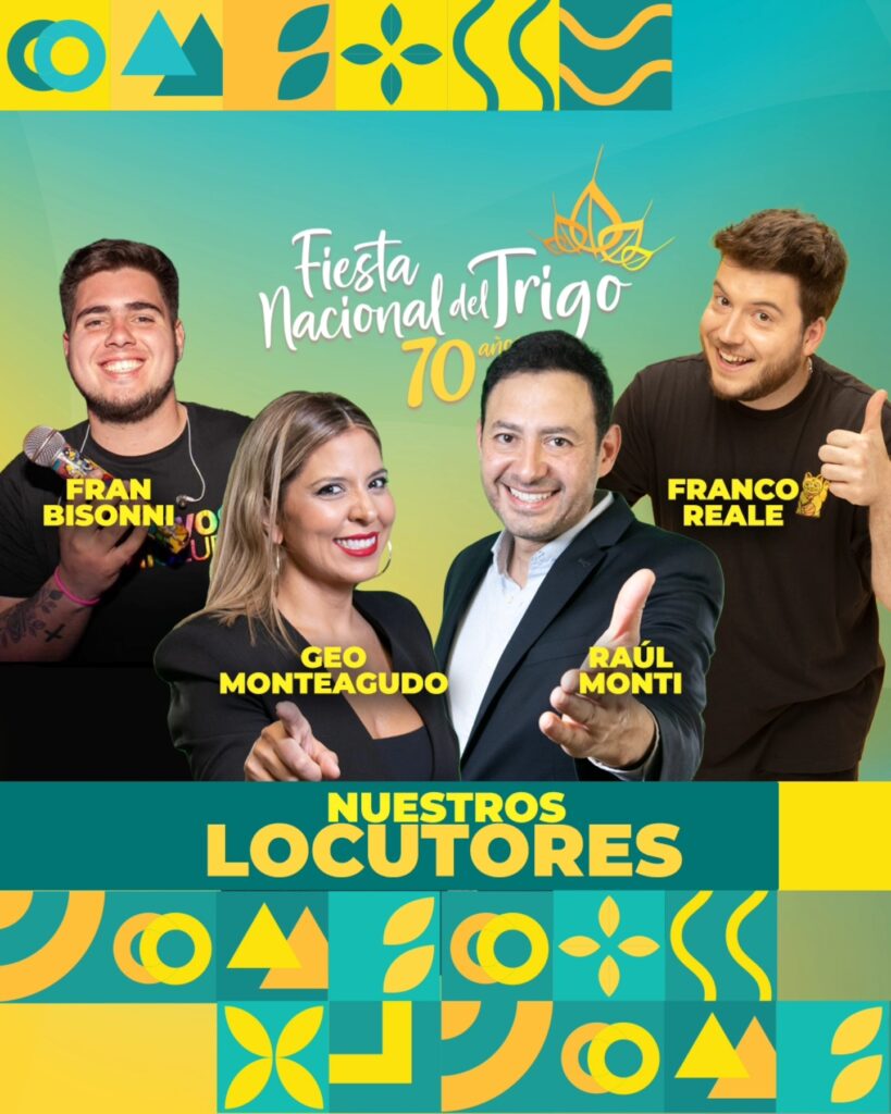 En la 70ª edición de la Fiesta Nacional del Trigo, las palabras vuelven a ser protagonistas. Arriba del escenario, cuatro comunicadores serán los encargados de marcar el pulso de cada noche, transmitir la energía del predio y convertir cada anuncio en parte del espectáculo.